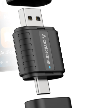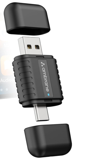 Ambrane 2-in-1 Wireless CarPlay Receiver, wireless CarPlay adapter, Android Auto wireless converter, Bluetooth 5.4 car dongle, best wireless carplay device, carplay receiver India, carplay adapter USB-C, convert wired carplay to wireless, Ambrane car accessories