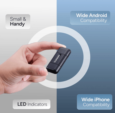 The Ambrane receiver is compatible with all OEM-installed wired CarPlay and Android Auto systems. It works across different car brands and infotainment models, provided they already support wired CarPlay or Android Auto. With Bluetooth 5.4, you get faster pairing, better range, and zero lag during usage — even when streaming music or using navigation simultaneously.
