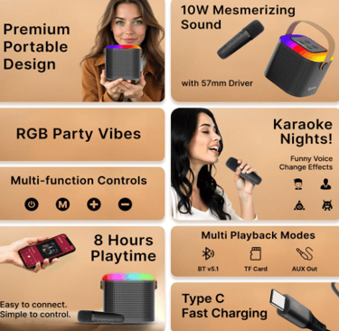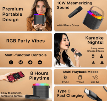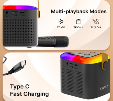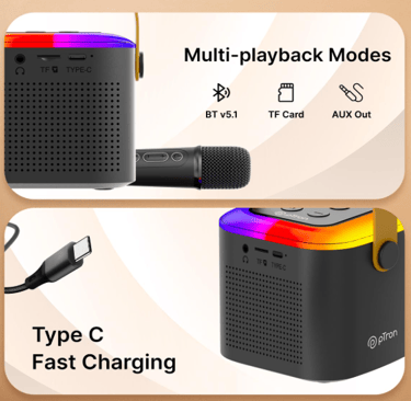 The pTron Fusion Tunes 10W Mini Bluetooth Speaker with Wireless Karaoke Mic is more than just a speaker—it’s a mini entertainment hub. With impressive sound quality, karaoke functionality, RGB lighting, and multi-play support, it delivers tremendous value for its price point.
